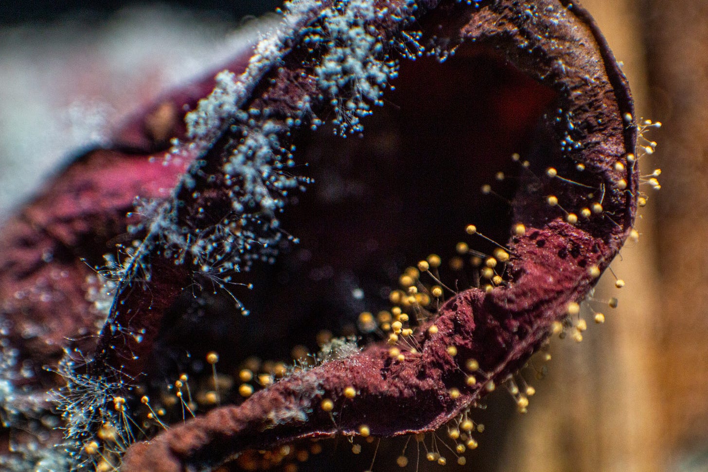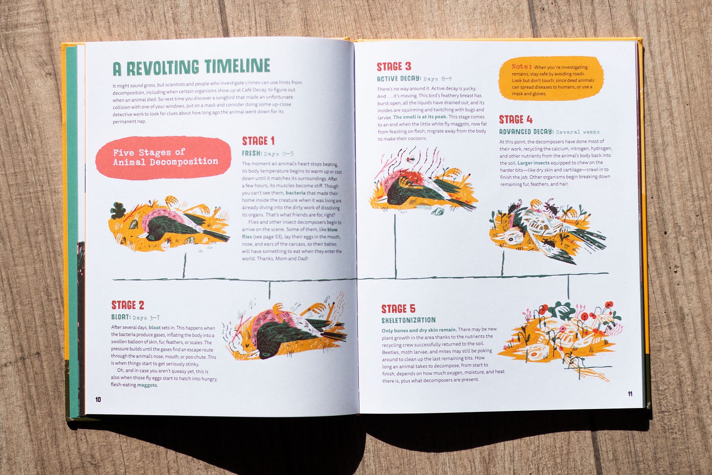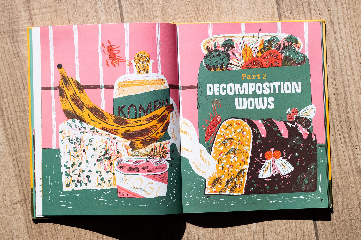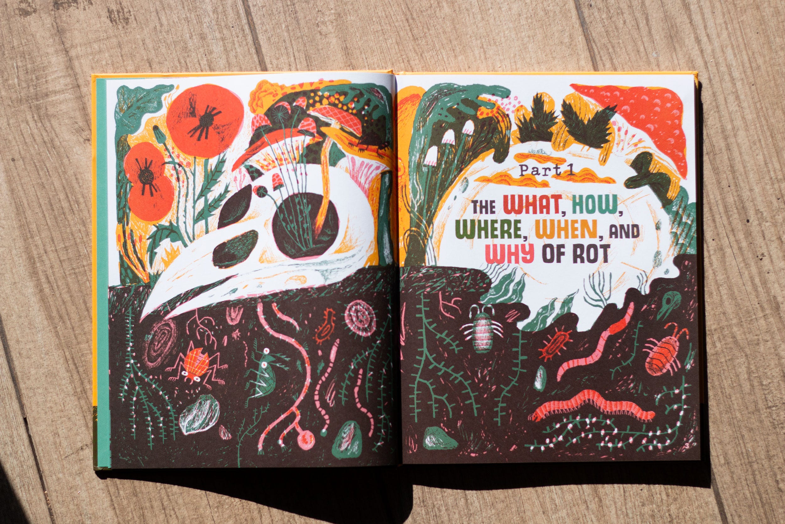 World of Rot was the dream home for me and my work for quite a few months last year. When I received the first reference images from the author, the brilliant Britt Crow-Miller, I was hooked: she had taken pictures of a rotting bird to keep a record of its decomposition over time. I had been taking improvised macro photos in my compost bin for months, and they were going to prove very useful!